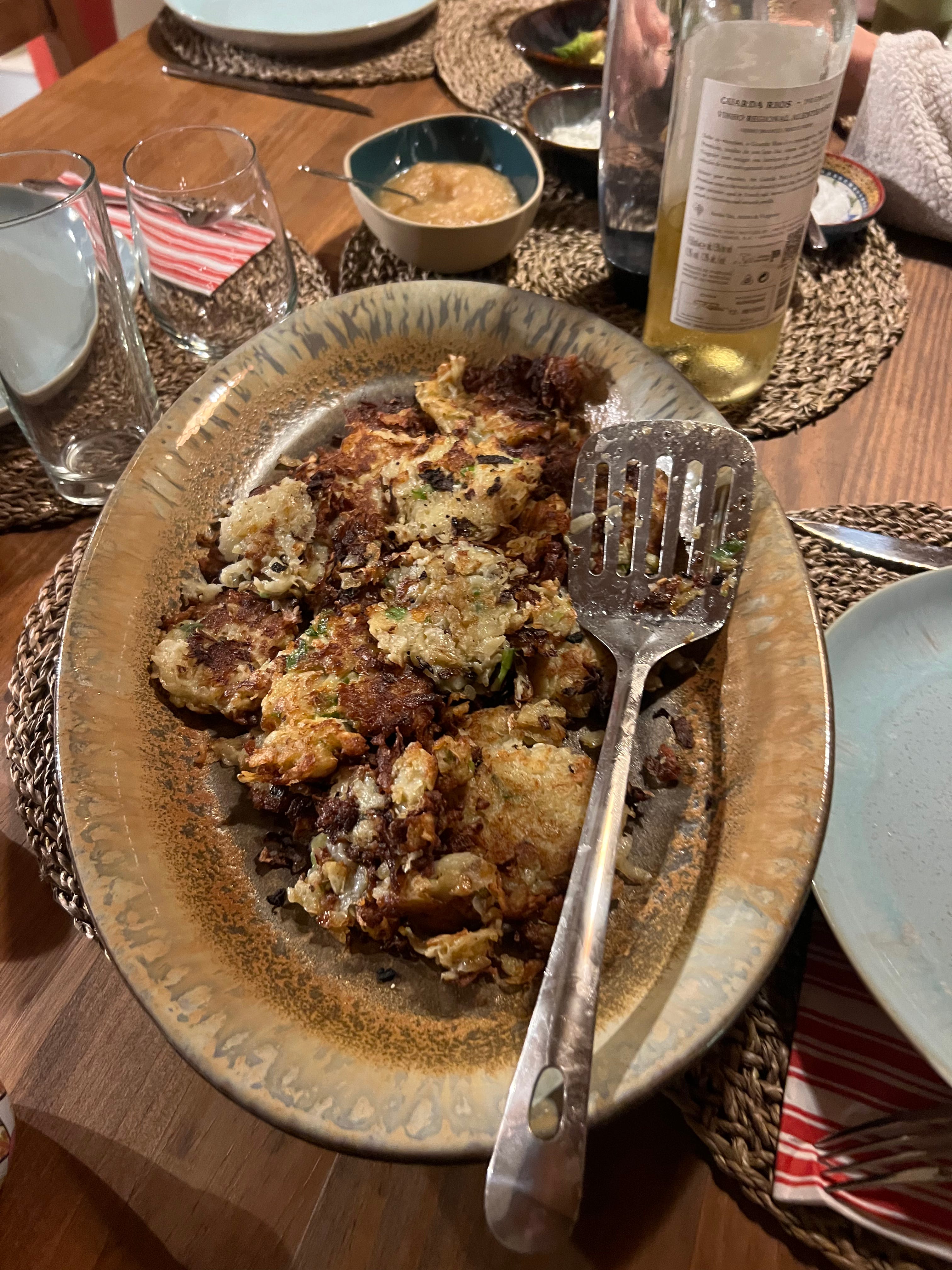 Let me tell you what else went wrong with my holiday fantasy. The Hanukkah latkes were a bitch to get out of the frying pan intact, maybe because the variety of potatoes I found was waterier than my trustworthy Yukon Golds, or because it took longer than expected to properly heat the oil on my temperamental induction range.