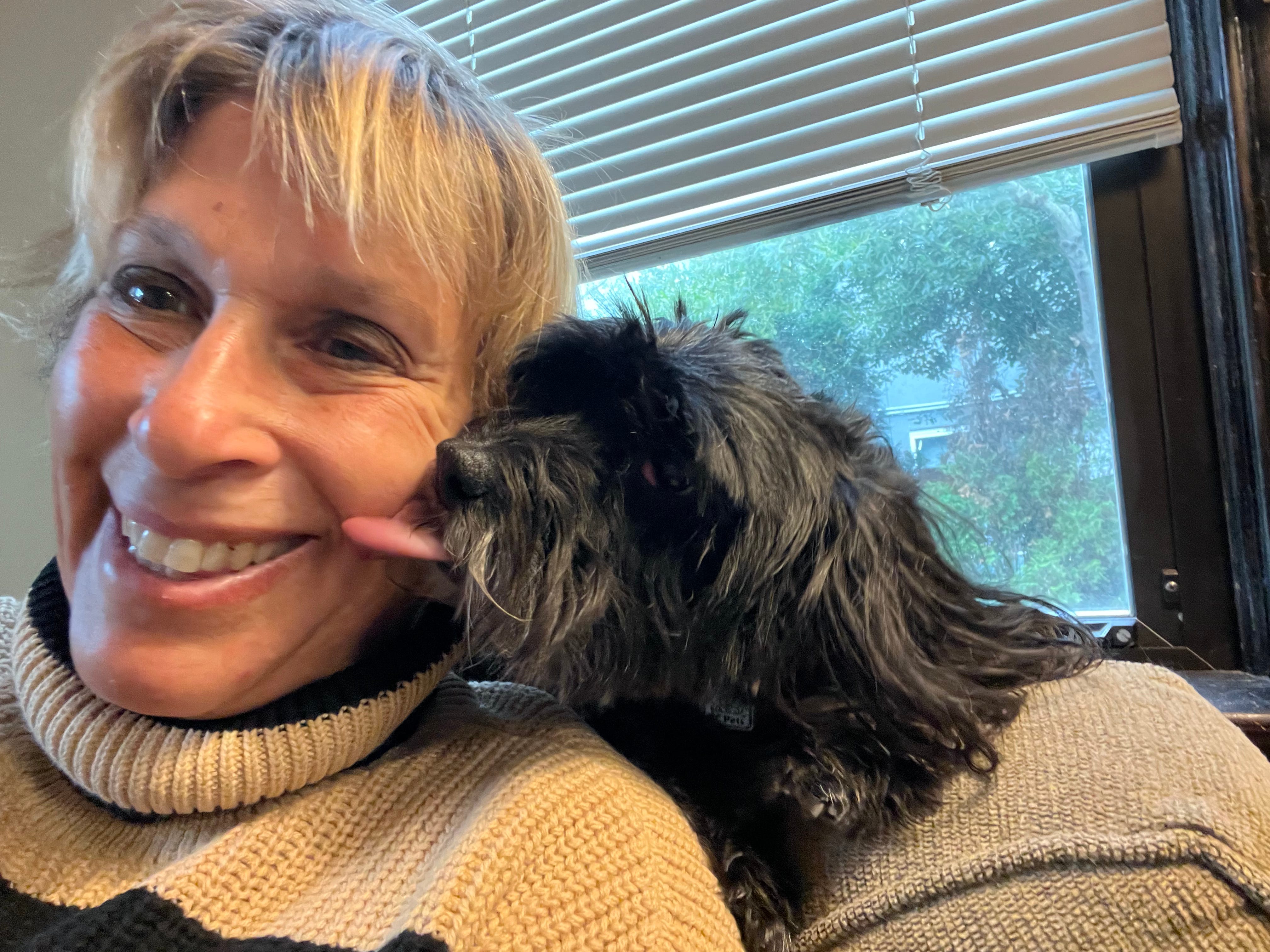 When I had to have surgery during the pandemic, knowing I wouldn’t be able to resist lifting Kobe up onto the bed or the couch where I was recuperating, J bought short-legged Kobe a set of stairs. This came in handy the next year, when I had to have surgery again, and two years later when I spent 13 months in cancer treatment. Kobe was a great recuperation buddy.
